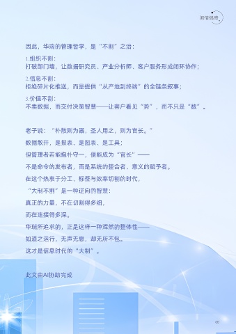 因此,華瑞的管理哲學(xué),是“不割”之治: